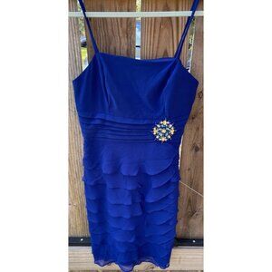 Jessica Howard Royal Blue Tiered Cocktail Dress Size 10 w/ Brooch Embellishment