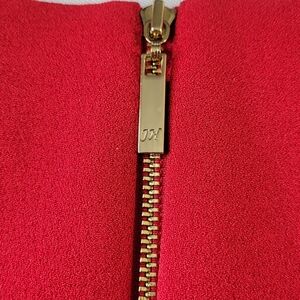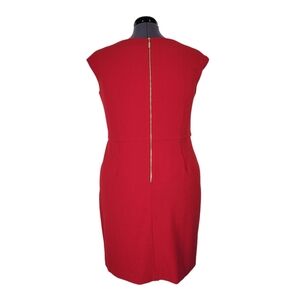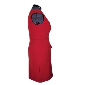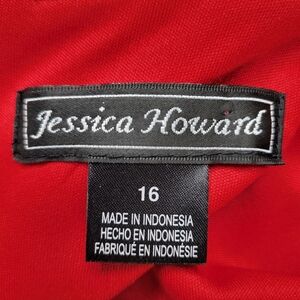 Jessica Howard Sheath Dress Size 16 Red Ruffled V Neck Back Zip Cap Sleeve Lined