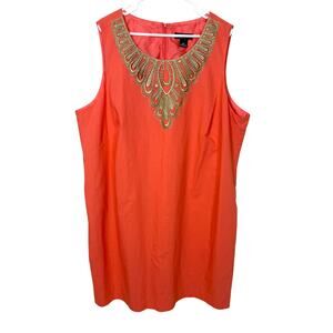 Jessica Howard Sheath Dress Size 24W Coral with Gold Details Resort Linen Blend