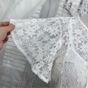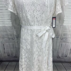 Jessica Howard Size 12 White Short Flutter Sleeve Ruffle Hem Lace A-Line Dress