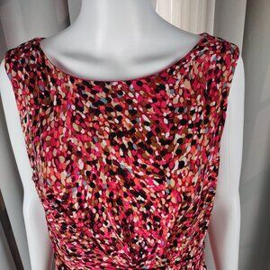 Jessica Howard Size 14 Pink White Black Print Midi Dress Sleeveless Ruched Waist