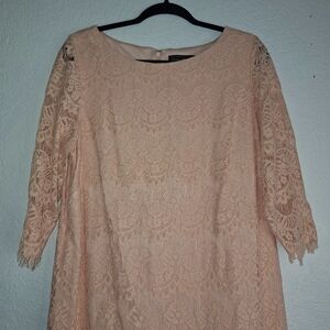 Jessica Howard Size 14W Knee Length Lace Women Peach Dress
