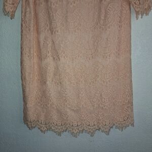 Jessica Howard Size 14W Knee Length Lace Women Peach Drefo. This elegant lace dress in a soft peach hue is perfect for any occasion. Its delicate design offers a timeless look.