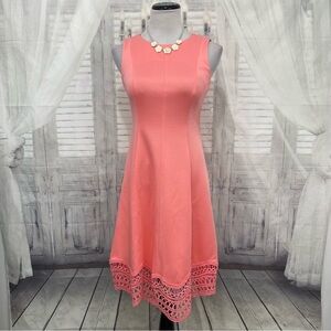 Jessica Howard Size 6P 6 Petite Pink Dress Sleeveless Fit & Flare Crochet Hem