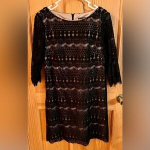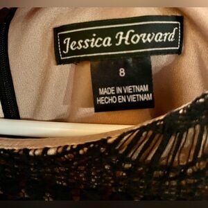 Jessica Howard Size 8 Little Black Dress Lace Sheath Lined w Nude Tone After 5