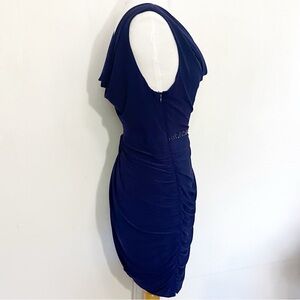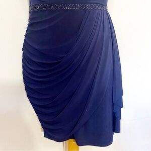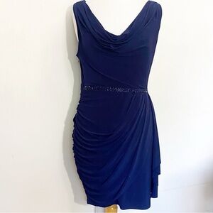 Jessica Howard Sleeveless Draped Ruched Knee Length Beaded Waist Navy Dress 8