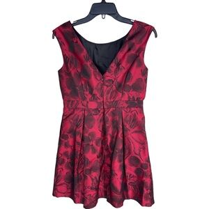 Jessica Howard Sleeveless Red Black Floral Print Fit & Flare Dress Size 8P