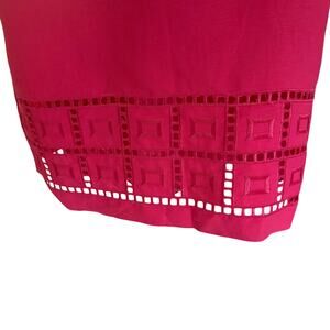Make a bold and elegant statement with this vibrant fuchsia pink shift dress by Jessica Howard. Designed in a flattering size 18, this sleeveless silhouette features a softly rounded neckline with a decorative front placket adorned with three covered buttons for a refined touch. The hem is beautifully finished with a geometric cutout lace detail, adding texture and visual interest. Perfect for brunches, garden parties, or daytime events, this dress combines effortless style with timeless charm.