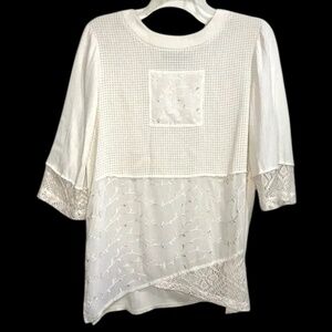 Jessica Howard Soft off White Asymmetrical Poly Top in Patchwork of Fabrics