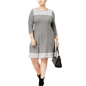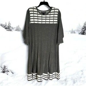 Jessica Howard Sweater Dress Gray White Fall Winter Stretch Just Above Knee NWOT
