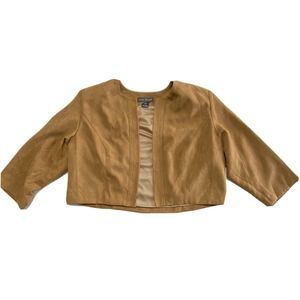 Jessica Howard Tan Suede Collarless Blazer Jacket 14 W. Condition is Pre-owned. Shipped with USPS Priority Mail.