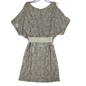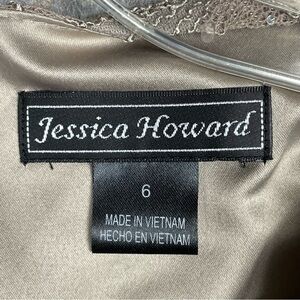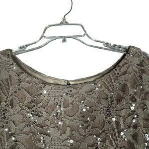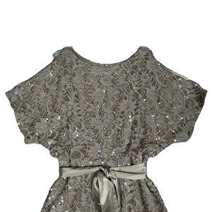 Jessica Howard Taupe Cold Shoulder Lace Sequin Elegant Dress Ribbon WaistTie Sz6