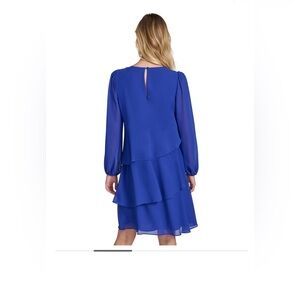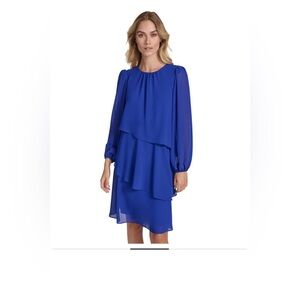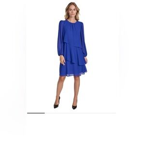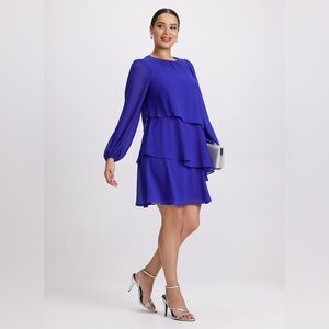 Sweep and sway with every step in this petite shift dress from Jessica Howard designed entirely in airy chiffon. Round neckline