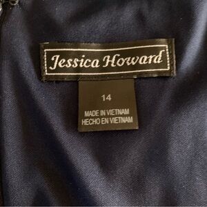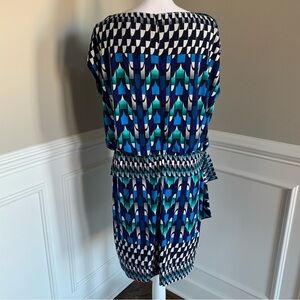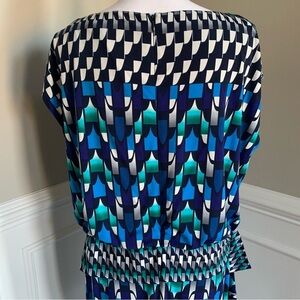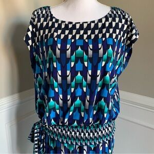 Jessica Howard Vibrant Black Blue Print Waist Tie Dress Size 14