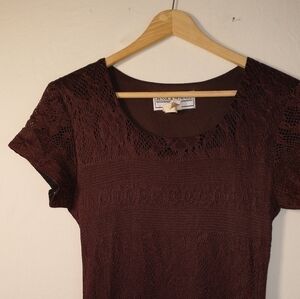 Jessica Howard Vintage 90's Retro Pencil Dress Cap Sleeve Dark Brown