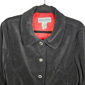 Jessica Howard Vintage Black Velvet-like Blazer Size 14 jewel buttons
