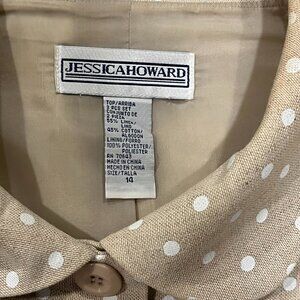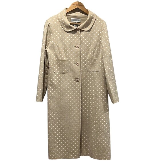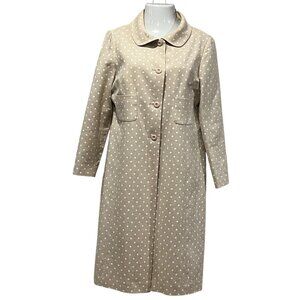 Jessica Howard Vtg Polka Dot Linen Blend Coat, Tan White, 14