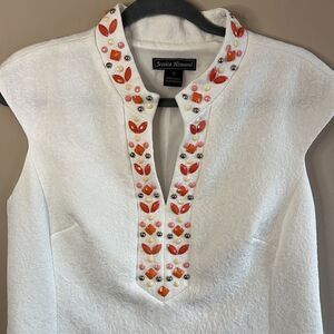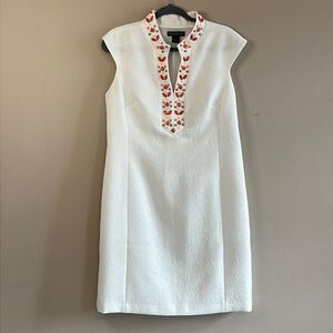 Jessica Howard White Sleeveless Sheath with Jeweled Neckline - Size 12