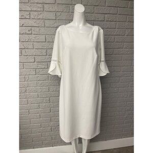 Jessica Howard Women White Elbow Length Tulip Sleeve Shift Dress Size 16