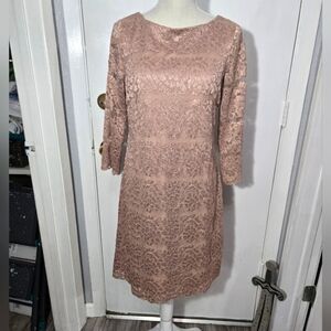 Jessica Howard Women's 3/4 Sleeve Lace Sheath Dress Sz 8 Brown