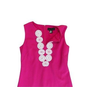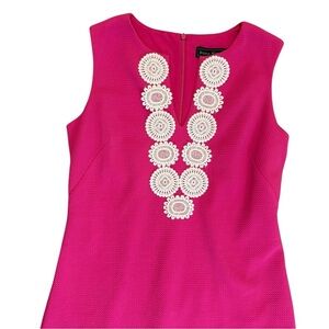 Excellent Condition: Trendy Preppy Sleeveless dress with lots of stretch & crochet lace neckline detail.