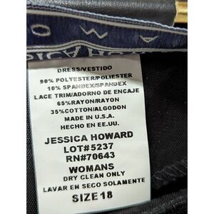 Jessica Howard Women's Black Lace Short Sleeves Velvet Shift Dress Size 18