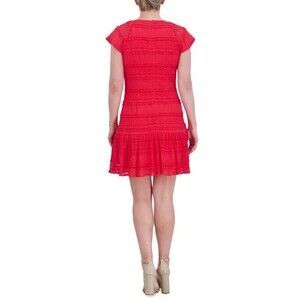 Jessica Howard Women's Flutter sleeves Lace A-Line Dress casual formal Red 6