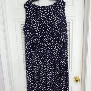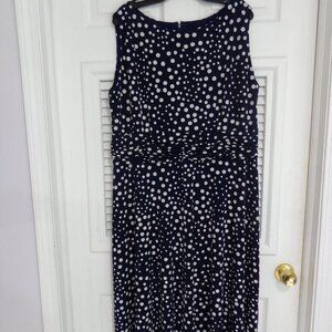 Jessica Howard Women's Navy Polka Dot Stretch Knit Midi Dress Size 20W