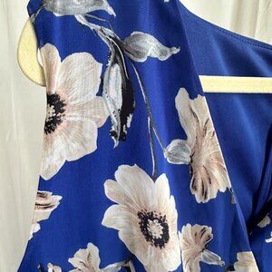 Jessica Howard Women's Plus 24W Blue Floral Faux Wrap Dress with Ruffle