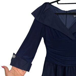 Jessica Howard Women's Portrait Collar Combo Midi Navy Blue Dress Sz 6, NWT