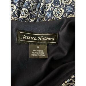 Jessica Howard Womens Size 8 Blue Argyle Pattern Sleeveless Midi Dress Fit Flare