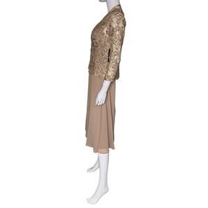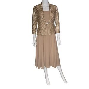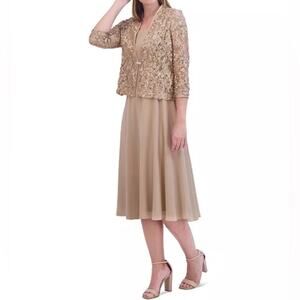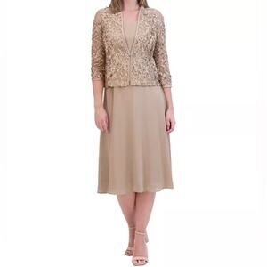 Jessica Howard Women's Soutache Jacket & Jewel-Neck Midi Dress Toffee Sz 6