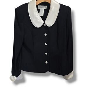 Jessica Howard Women’s Vintage Black White Contrast Collar Button Down Jacket Size 10