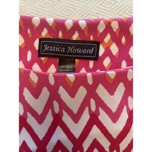 Jessica Howard XXL Hot Pink Orange Chevron Colored Summer Poly Spandex Dress EUC