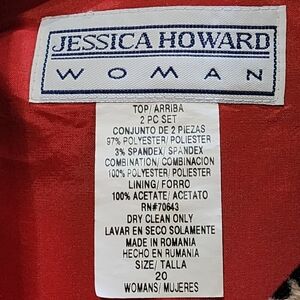 Add bold flair to your outerwear collection with this Jessica Howard Woman plus-size zip-up jacket, featuring a classic black body with statement leopard print trim on the collar, cuffs, hem, and pockets. Made from a soft polyester-spandex blend with a smooth acetate lining, this jacket offers a flattering fit and stylish versatility. The gold-tone zipper closure adds a sleek finish to this animal-print accented piece. Based on the RN# 70643 and design, this jacket is early 2000s Y2K vintage, perfect for layering or making a chic transitional statement.