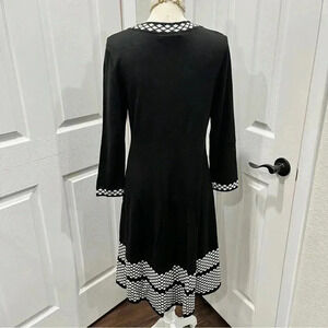 Jessica Howard black and white, geo pattern trim sweater dress. Fit and flare