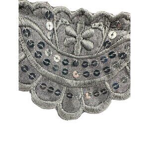 This Jessica Howard vintage velvet dress is a gothic-inspired piece from the 80s, perfect for any stylish woman. The black dress is a size 8, featuring a scalloped neck, lace, sequins, embroidery, and a sheath design. Made of acetate, nylon, and rayon.