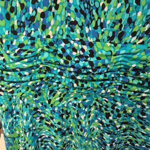 Very gently worn dress.Size 16W. Very comfortable length: 47" across ruching: 20" pit to pit: 22"