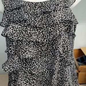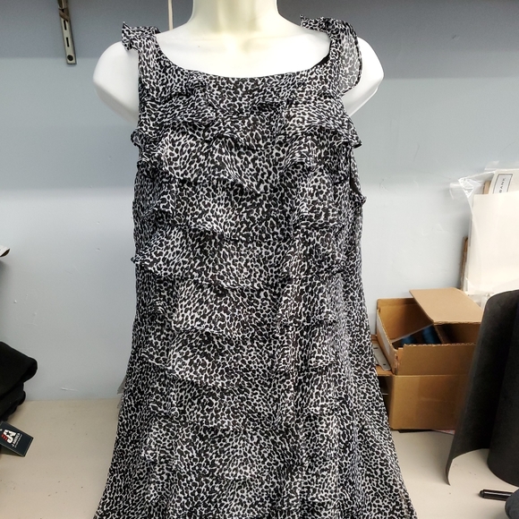 Sleeveless, Ruffle Front, layered. Black and White animal print style dress. Above knee. Woman's 12. Gently worn once.