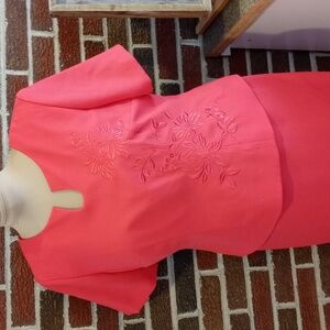 Jessica Howard women's petite size 14. Coral with embroidered flowers