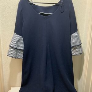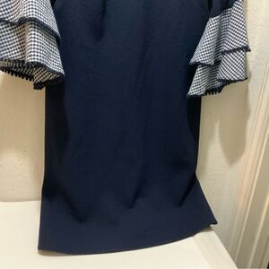 Jessica Howard Dress Navy Blue Shift Gingham Ruffle Fall Boho Work D8
