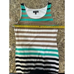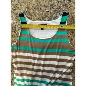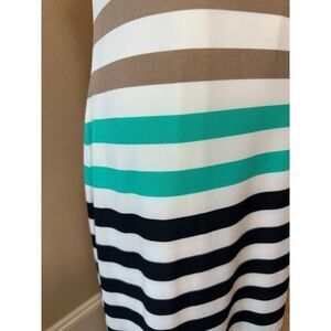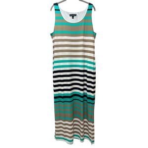 Jessica Howard NEW Size XL Sleeveless Striped Maxi Dress Turquoise, Black, Tan and White Comfy Stretch Whimsical Resortwear