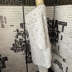 Jessica London 18/20 White Open Knit V-Neck Neck Half Sleeve Sweater