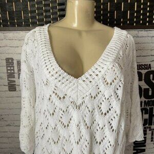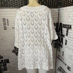 Jessica London 18/20 White Open Knit V-Neck Neck Half Sleeve Sweater