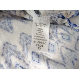 Jessica London 22/24 1X Tunic Boho Geometric Blue 3/4 Sleeve V Neck