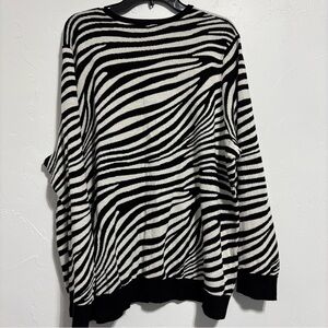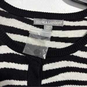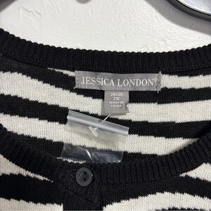 Jessica London 2X 26-28 Plus Women's Black White Stripe Zebra Cardigan Button Front Sweater Long Sleeve