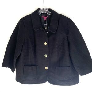 Jessica London Black Cropped Jacket 100% Cotton Lined 3/4 Sleeve 22 NWT