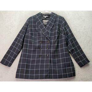Jessica London Blazer Jacket Womens Size 12W Multi Check Double Breasted Button