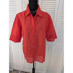 Jessica London Capri /Top Set Women 18W Linen Blend Shirt Lace Orange Vacay NEW