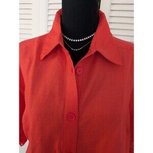 This Jessica London Capri Set in size 18W is a stylish and versatile outfit perfect for various occasions such as travel, casual outing, party, or workwear. The set includes a relaxed fit shirt made of a linen blend fabric with accents of crochet, button, and zipper details. The top features a collared neckline, short sleeves, and a cropped style, while the pants have an elastic waist for added comfort. The vibrant orange and watermelon red colors add a pop of color to your wardrobe, making it ideal for the summer, fall, and spring seasons. Overall, this set from Jessica London is a fashionable choice for any beach or colorful-themed outfit.